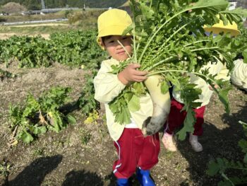 今回は自分で選んで、引き抜いた大根を持ち帰っています。「どんな大根が大きいかな〜」と一人ひとり自分で考えながら探していましたよ!