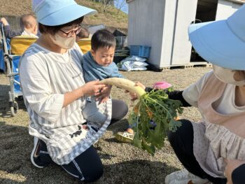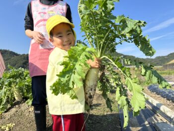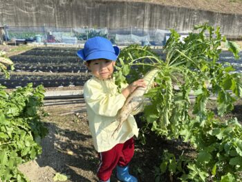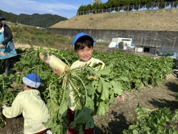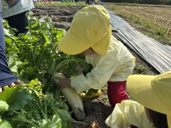 昨日(11月17日)に友愛保育園の隣の畑で大根掘りを行いました。