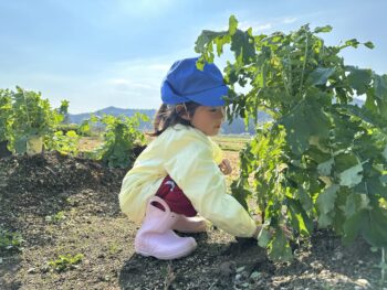 保育園から日々大根の成長を見つめていた子ども達![]()