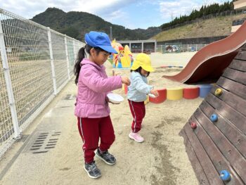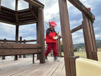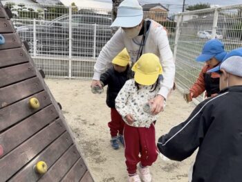 「先生一緒に滑り台滑ろう!」「この椅子に座って日向ぼっこするんだ~!」「先生!見てここから登れるようになったよ!」