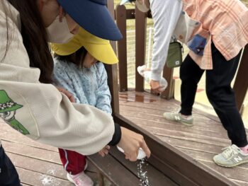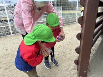 さて、代表のお友達が六角タワーの周りや遊具にお塩やお酒をまきました。