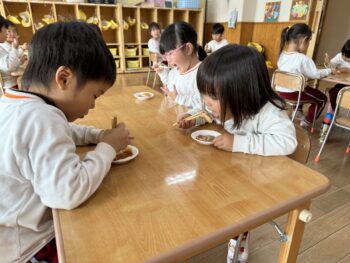 鏡餅に使われているだいだいは、代々続きますようにと願いが込められていること、うらじろは人間関係がうまくいきますようにという意味があることを知っていましたか?友愛保育園のお友達も初めて知り、沢山学ぶ事が出来ました。