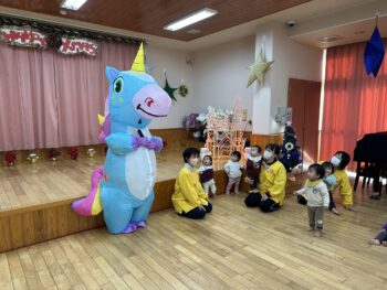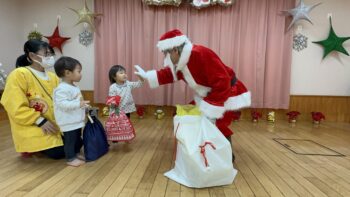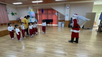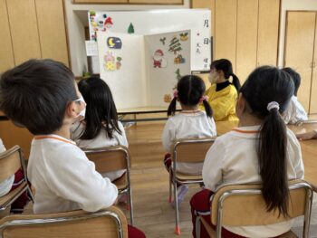 クリスマスのパネルシアターでは、サンタさんが動物にクリスマスプレゼントを届けるお話で、友愛保育園のお友達も「誰のプレゼントかな?」と考えながら楽しんで見ていました![]()