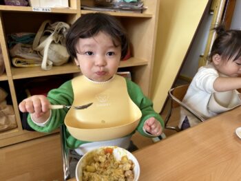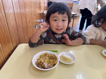 給食は、カレーに唐揚げとみんなの大好きなメニューでした![]()