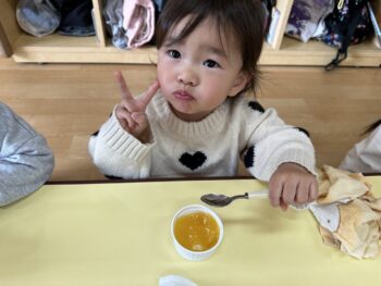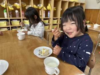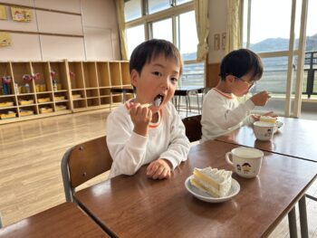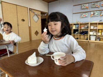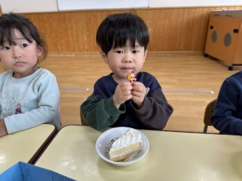 今日のおやつは、さくら組さんからばら組さんはクリスマスケーキ、ちゅーりっぷ組さんとゆり組さんはオレンジゼリーでした![]()