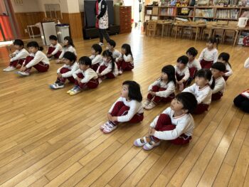 お正月についてや門松を飾る意味等をお話して頂き、真剣に聞いていた子ども達です。