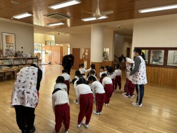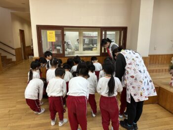 最後に、いつも一緒に遊んでいるお友達や先生方、給食室の先生方に「ありがとうございました!」と感謝の気持ちを伝えました。