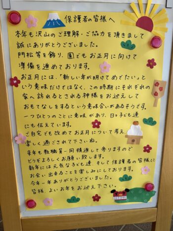 来年、お友達や保護者の皆様に元気にお会い出来るのを楽しみにしております。