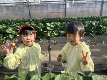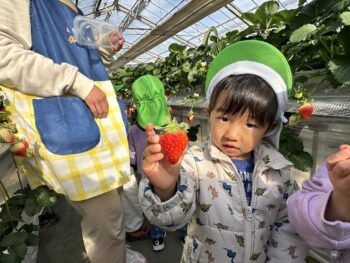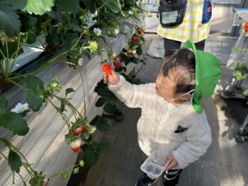 お友達同士で赤いいちごを探し合ったり、「これが甘いんじゃないかな!?」「んー!!美味しい!!」と嬉しそうに話しながら食べていた子ども達です![]()