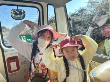 バスの中では、「50個食べる!!」「た〜くさん食べる!」と両手をいっぱい広げてみせたりと、子ども達が楽しみにしているのがとても伝わりました!