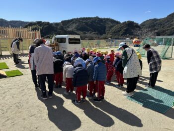 ひまわり、すみれ、さくら組の子ども達も参加しましたよ。子ども達も、しっかり頭を下げてお祓いをしていただきました。