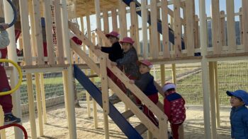 大きな遊具が設置される中「いつから遊べる?」「早く遊びたいな〜」と言っていましたよ![]()
